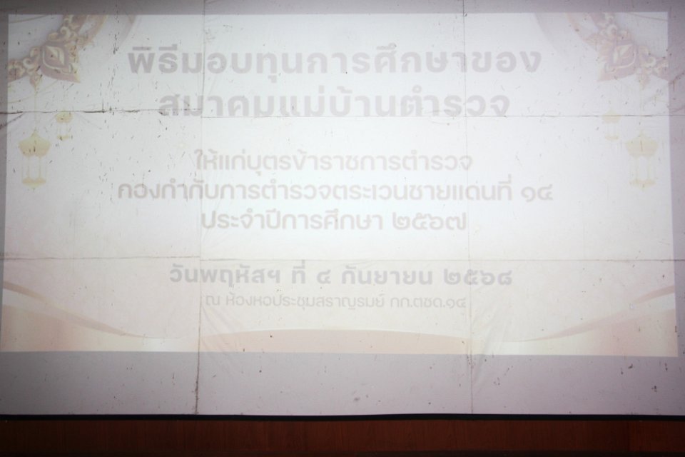 ๔ ก.ย.๖๘ พิธีประดับเครื่องหมายยศ และมอบทุนการศึกษาของสมาคมแม่บ้านตำรวจ ประจำปี ๒๕๖๘
